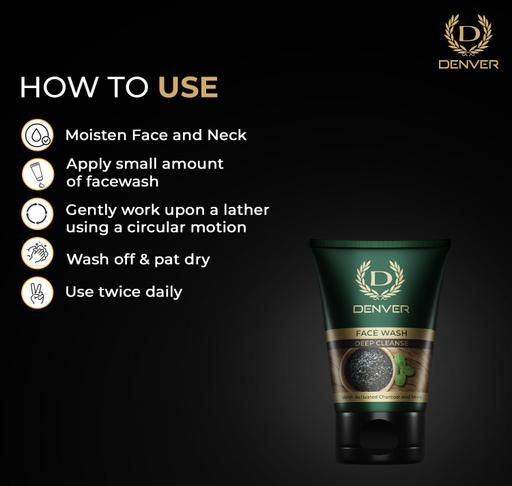 Denver Face Wash is designed to be easy to use and suitable for daily use. Simply wet your face with water, squeeze a small amount of the face wash onto your palm, and work it into a lather. Gently massage it onto your face in circular motions, paying attention to areas prone to oiliness or congestion. Rinse thoroughly with water and pat dry for instantly refreshed and revitalized skin.