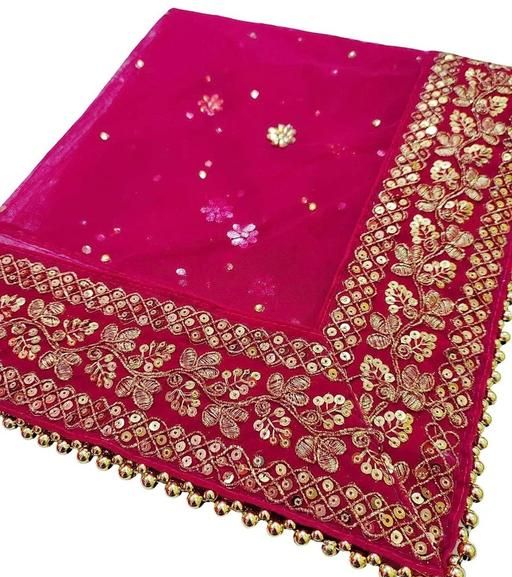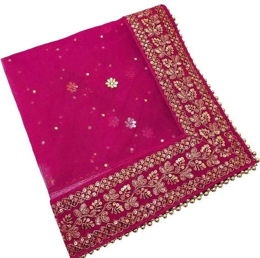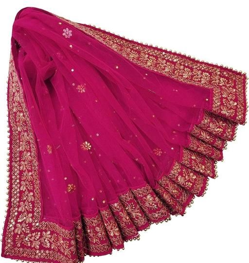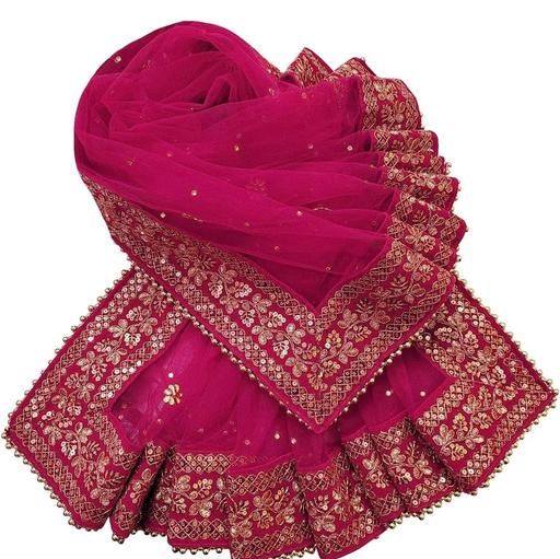 Women's Heavy Net Dupatta with Zari Embroidery border and 4 side moti lace. This is original dupatta by