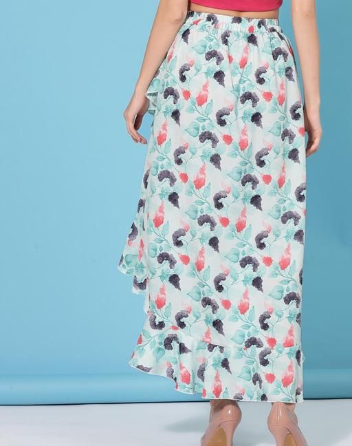 Floral Print A-line Knee Length Skirt in Crepe fabric