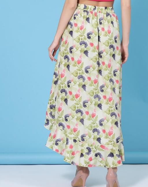 Floral Print A-line Knee Length Skirt in Crepe fabric