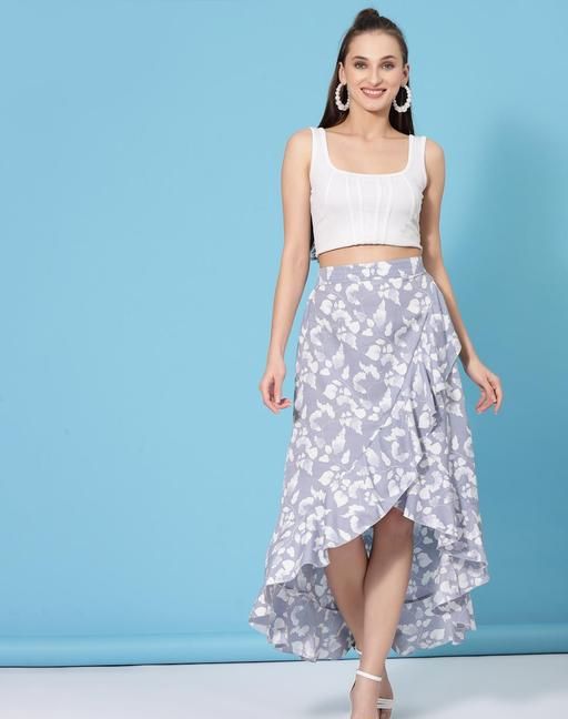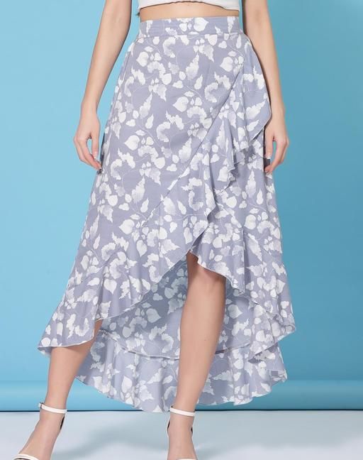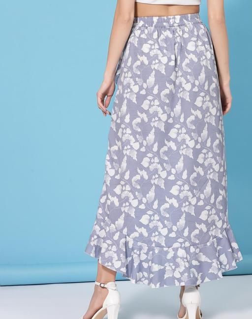 Women's Floral Asymmetric Grey Skirts