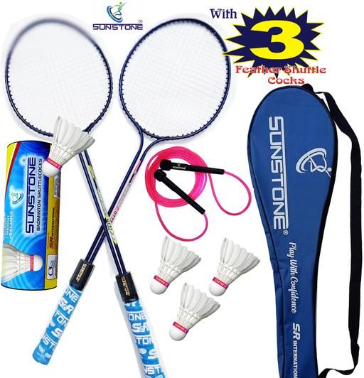 Pack of 2 Badminton Rackets 3 Feather Shuttle With FREE Skipping Rope