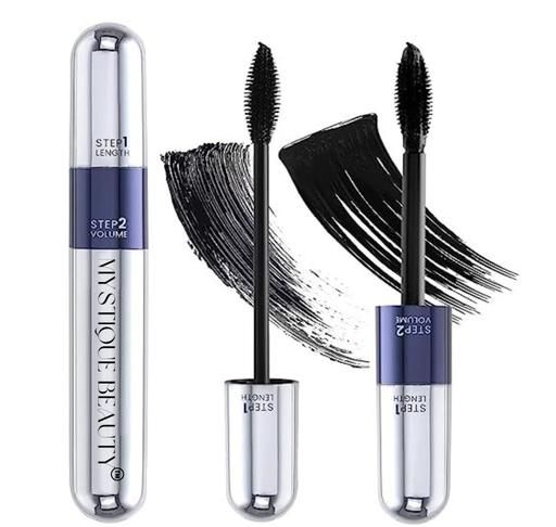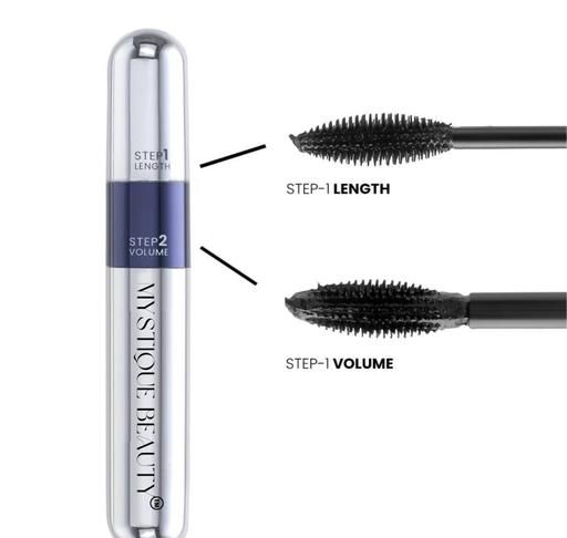 Mystique Beauty VOLUMISING AND LENGTHENING 2 IN 1 MASCARA: Double Trouble has the best of both worlds, get the desired length with one cap and volume with the other. Get thicker and more dramatic lashes with one product. Slip it in your vanity bag to double the trouble.