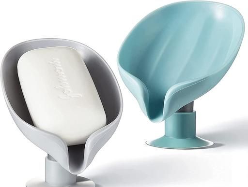 Leaf Shape Soap Holder Stand (Pack of 2) Self Draining for Bathroom Kitchen Wall Mounted Plastic Soap Dish Tray Cady Bathroom Accessories Set No Drilling Multi Color (Leaf-SOAP-Dish-2)