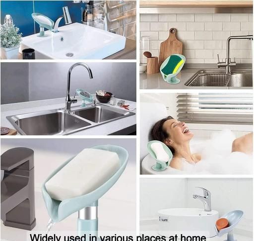 Name: Leaf Shape Soap Holder Stand (Pack of 2) Self Draining for Bathroom Kitchen Wall Mounted Plastic Soap Dish Tray Cady Bathroom Accessories Set No Drilling Multi Color (Leaf-SOAP-Dish-2)