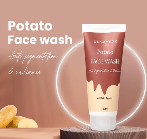 Glamveda Potato Anti Pigmentation Face wash is enriched with potato extracts. Potatoes are rich in nutrients like vitamin C, vitamin B1,B3, B5, and minerals like magnesium, potassium, phosphorus, and antioxidants and beta carotene. Potato extracts evens out skin tone, reduces hyperpigmentation, helps tighten open pores and boost collagen synthesis for a smooth, even tone and plum skin texture.