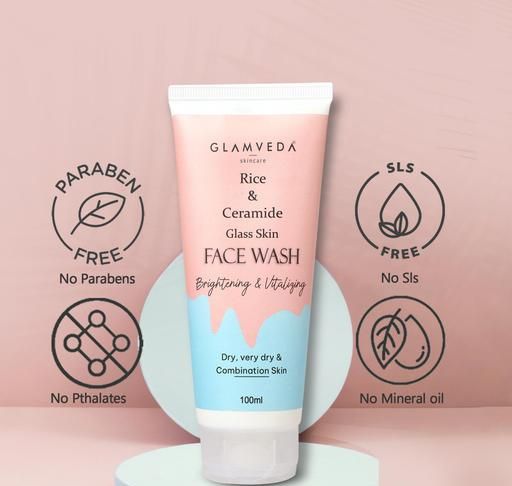 Product Name: Glamveda Rice & Ceramide Glass Skin Face Wash | For Dry And very Dry Skin To Normal Skin | Brightening , Whitening & Lightening Face Wash |For Men & Women