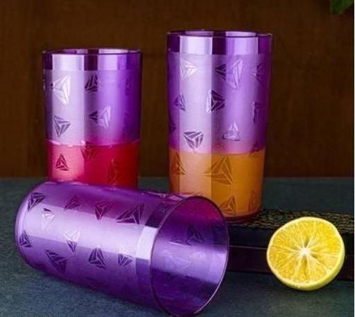Name: S R OLL PRODUCT Plastic Diamond Design Unbreakable Stylish Transparent Water Glass/Juice Glass/Beer Glass/Wine Glass Plastic Glass Set 300 Ml Each (Pack of 6) Blue