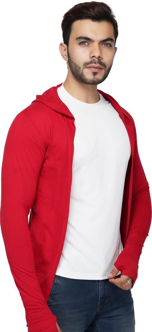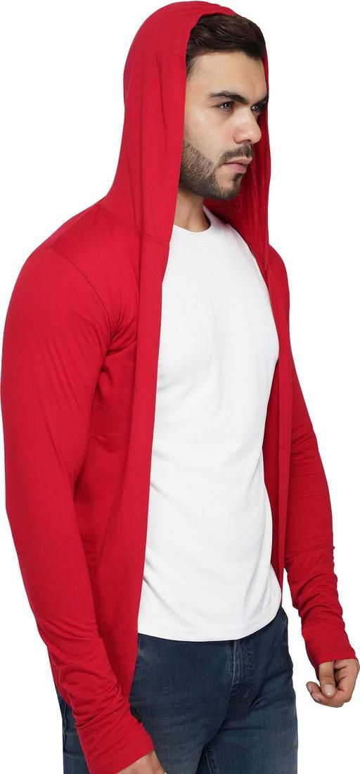 Name: GLAMPANDA Men Red Hooded Thumbhole Open Long Cardigan Shrug Men's Stylish Solid Cotton Square Neck Collar Full Sleeves Cardigan/Shrug