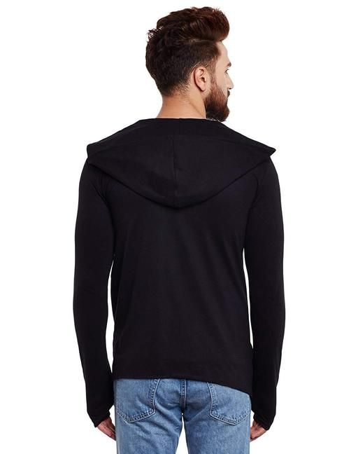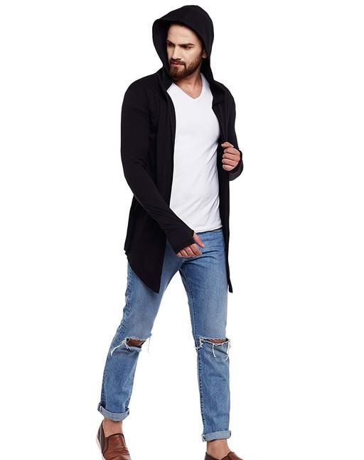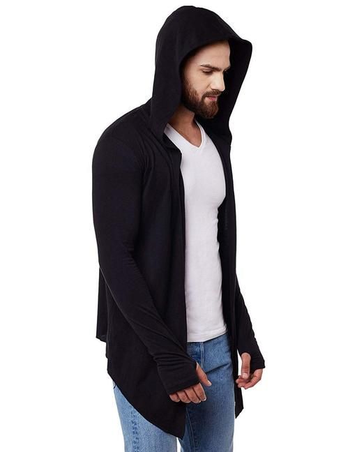Name: GLAMPANDA Men Black Hooded Thumbhole Open Long Cardigan Shrug Men's Stylish Solid Cotton Square Neck Collar Full Sleeves Cardigan/Shrug