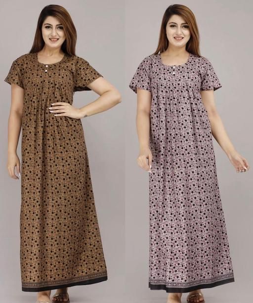 Mj Lifestyle Women's Cotton Printed Nighty For Women Maxi For Nighty For Women Combo(Pack Of 2)