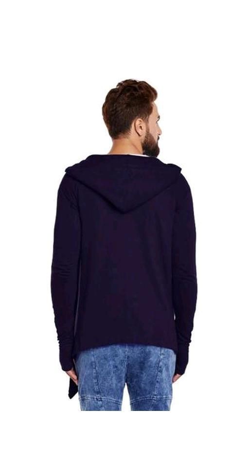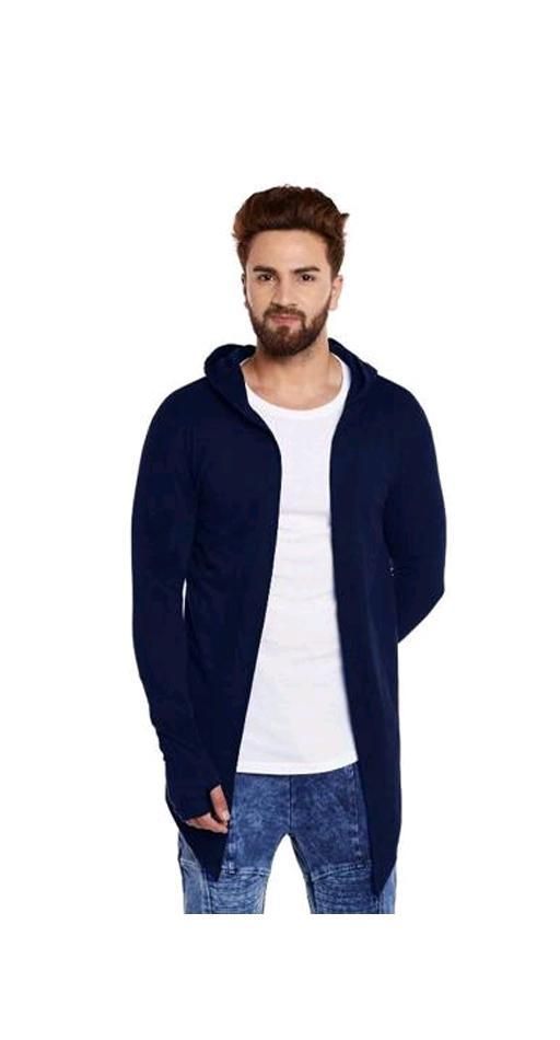 Name: GLAMPANDA Men Navy Blue Hooded Thumbhole Open Long Cardigan Shrug Men's Stylish Solid Cotton Square Neck Collar Full Sleeves Cardigan/Shrug