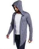 GLAMPANDA Men Navy Anthra Hooded Thumbhole Open Long Cardigan Shrug Men's Stylish Solid Cotton Square Neck Collar Full Sleeves Cardigan/Shrug