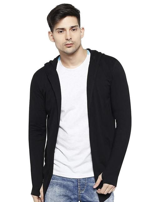 Name: GLAMPANDA Men Black Hooded Thumbhole Open Long Cardigan Shrug Men's Stylish Solid Cotton Square Neck Collar Full Sleeves Cardigan/Shrug