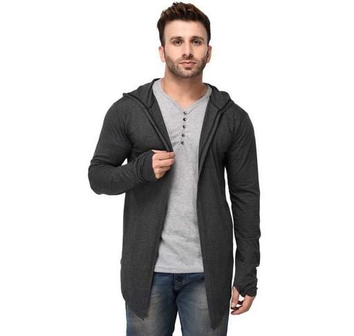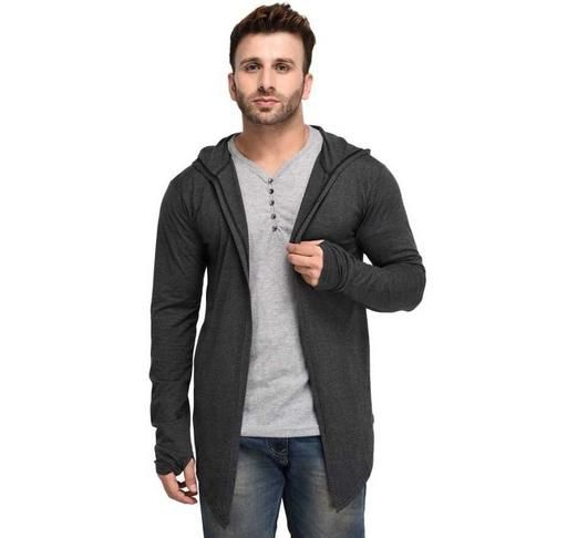 Name: GLAMPANDA Men Dark Grey Hooded Thumbhole Open Long Cardigan Shrug Men's Stylish Solid Cotton Square Neck Collar Full Sleeves Cardigan/Shrug