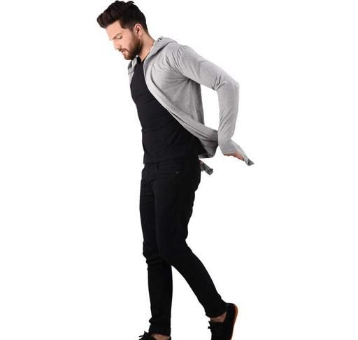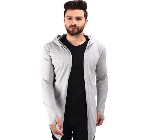 Name: GLAMPANDA Men Grey Hooded Thumbhole Open Long Cardigan Shrug Men's Stylish Solid Cotton Square Neck Collar Full Sleeves Cardigan/Shrug