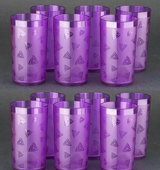 Name: ROYALRYTE (Pack of 12) Plastic Diamond Design Unbreakable Stylish Transparent Water Glass/Juice Glass/Beer Glass/Wine Glass Plastic Glass Set (300 Ml, PURPLE)