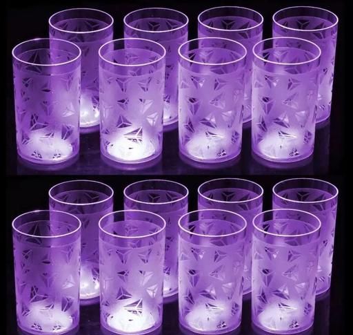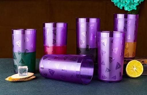 Name: ROYALRYTE (Pack of 16) Plastic Diamond Design Unbreakable Stylish Transparent Water Glass/Juice Glass/Beer Glass/Wine Glass Plastic Glass Set (300 Ml,PURPLE)