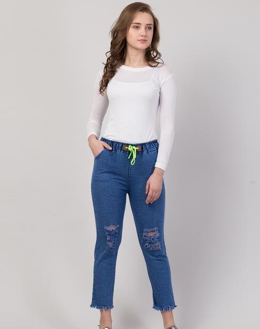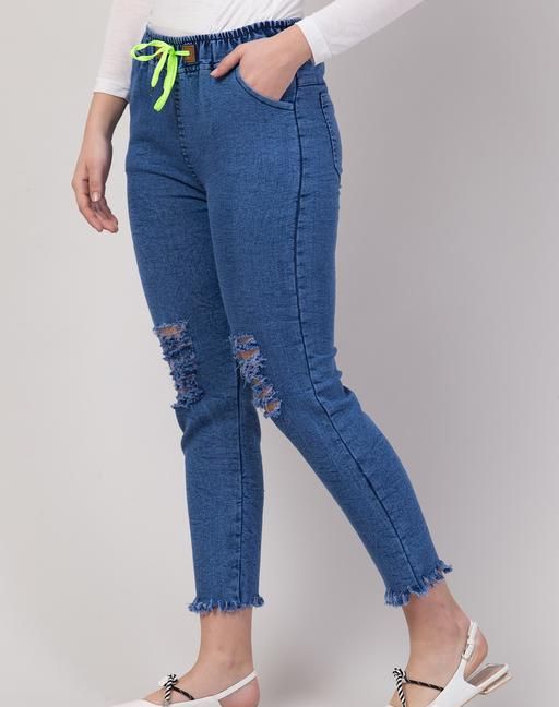Classy Knee slit Women Jogger Jeans | Baggy jeans, shorts jeans, high waist, plus size women's denim jogger jeans elastic waist ankle cuff pants, mid waist blogger jeans, xl,2xl, 3xl, 4xl,Pepe, Wrangler, Mango, Flying Machine, Killer jeans