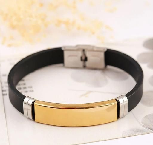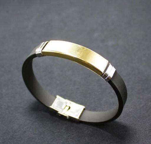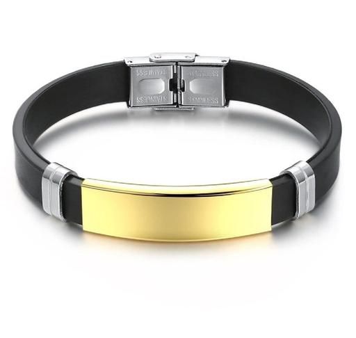 Name: Black Silver Gold Stainless Steel Silicon Wrist Band Customized Personalised Letter Engraved ID Bracelet Men