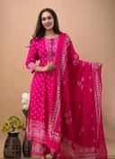Women's Rayon Printed Anarkali Kurti with Pant and Dupatta Set