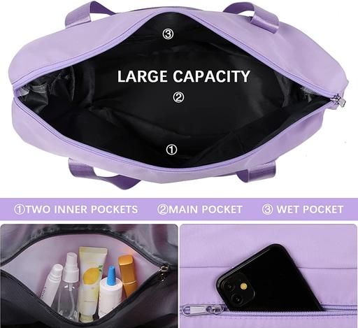 ZIP CLOSURE - This travel duffel Bag comes with 2 inside small pocket + 1 Main pocket + 1 small Dry wet pocket + 1 Front Small Zipper Pocket. It is mostly suitavble for carry cosmetics and other essensial items with different pockets.