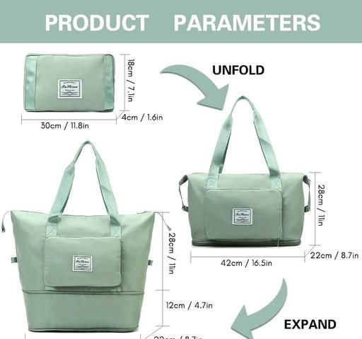 NORMAL DIMENSION: 40 x 22 x 30cm. Expansion Dimension: 40 x 23 x 45cm. 41.40 Ltrs. It is foldable bags for travelling for women.