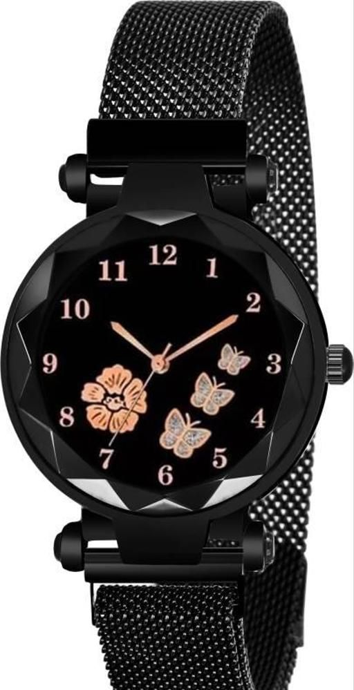 Dark Black color Magnetic belt diamond Studded watch for girls or women Analog Watch - For Women Malmo 21st Century Black Color