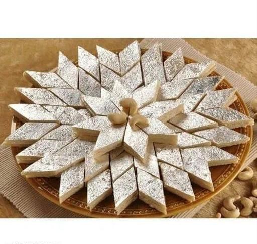 Kaju Katli, also known as Kaju Barfi, is a traditional Indian sweet made primarily from ground cashew nuts, sugar, and sometimes cardamom or other spices.