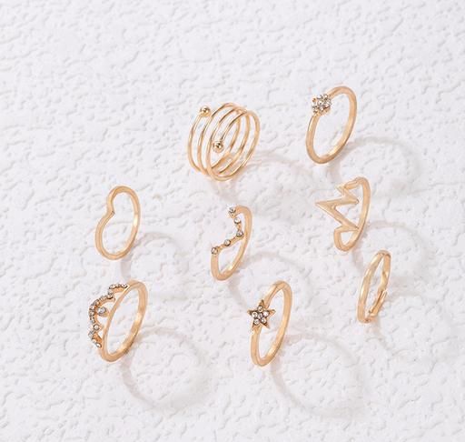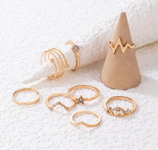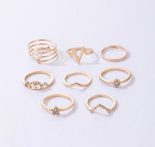 Name: Jewels Galaxy Gold Plated Set of 8 Heartbeat inspired Contemporary Stackable Rings Set For Women and Girls