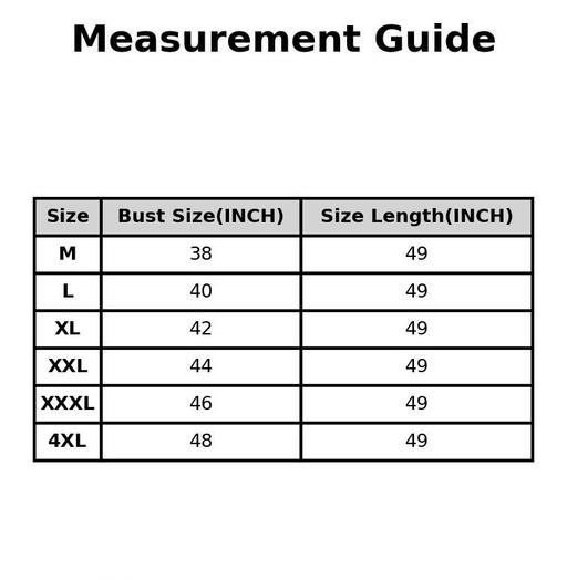 5XL (Bust Size: 50 in, Size Length: 48 in)