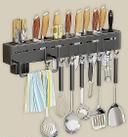 ? ? MULTIFUNCTIONAL DESIGN: These hangers for kitchen offers ample storage space to hold chopsticks, forks, spoons, towels/napkins, kitchen knives, etc. You can use the hooks on our kitchen hanger to hang pots, pans, and other utensils. It also has a towel bar and 2 slots for holding scissors and everything in one place