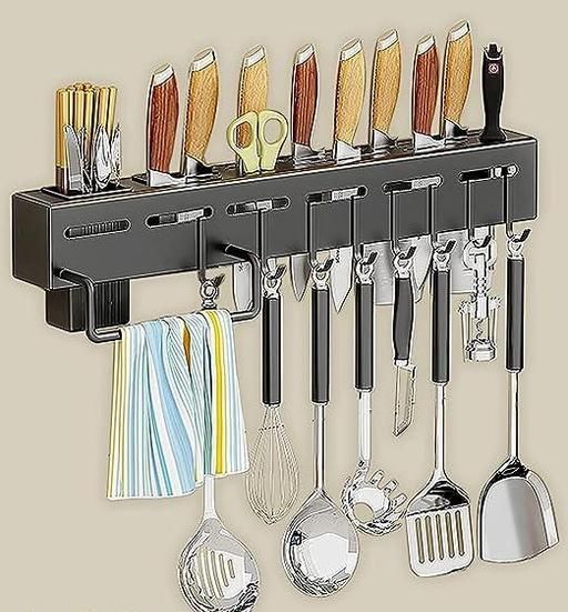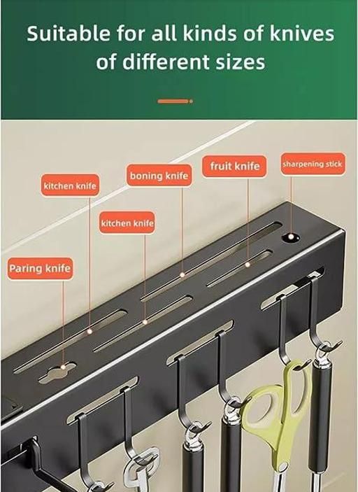 ? ? MADE USING HIGH-QUALITY MATERIAL: These multipurpose hangers for kitchen are made using high-quality and durable stainless steel, which is coated to provide resistance against rust and corrosion. Our knife holder for kitchen does not bend or break and offers a sturdy and stable cutlery rack for kitchen