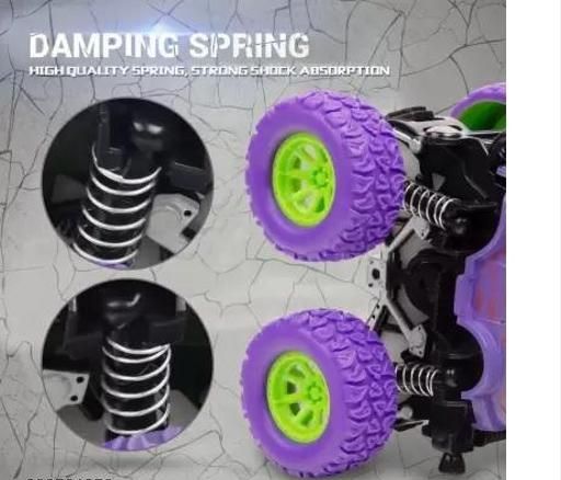 DURABLE & ANTI-COLLISION & SHOCKPROOF ALL TERRAIN CAR?JMV 4 wheel inertia monster toy trucks are made of durable ABS plastic, with anti-collision protection, environment friendly and safely. And designed with 4 shockproof springs, which will eliminate the vibration of uneven road surface and make driving more stable. High quality inflatable rubber wheels, anti-skid, shock resistant, with strong grip, being capable of driving stably in all terrains like beach, sand, grass or road.