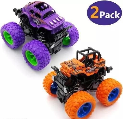 Name: PACK OF 2 PCS Monster Truck Friction Powered Cars Toys, 360 Degree Stunt 4wd Cars Push go Truck for Toddlers Kids Gift
