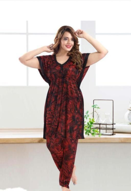 Name: WOMENS SATIN KAFTAN NIGHT SUITE -KAFTAN TOP AND PAYJAMA SET - WOMENS LONG NIGHT SUITE -KNEE LENGTH KAFTAN TOP AND PAYJAMA SET - NIGHTDREE -NIGHTY FOR WOMENS AND GIRLS