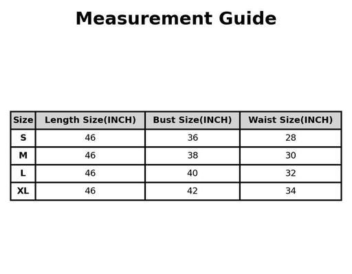 XL (Bust Size: 42 in, Length Size: 46 in, Waist Size: 34 in)