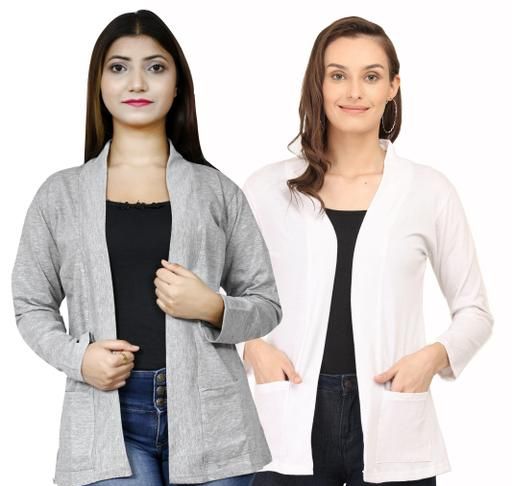 Women Straight Full Sleeve White Shrug