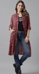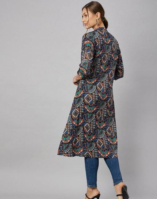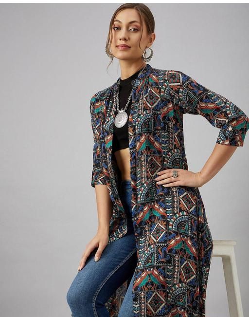 This shrug printed By VOGUEPEDIA is crafted in Viscose Rayon and feature a Collae neck, 3/4 Sleeve, SHEEN SURFACE STYLE and a regular fit.