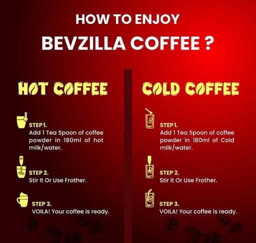 "Makes 200 Cups of Coffee,The Bevzilla Coffee powder is made from 100% pure Arabica Beans and promises to deliver smooth, delicious, and frothy coffee every time. It delivers a premium taste of freshly brewed cafe-like coffee at home at the same cost as your regular coffee.Balanced, smooth, and strong without any bitterness with subtle aromatic & delicious notes of pure coffee. Gluten-free & Vegan friendly with no preservatives, no additives, and no added sugar."