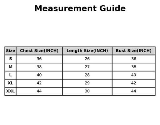 XL (Chest Size: 42 in, Length Size: 29 in)