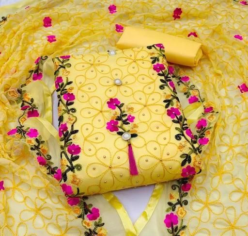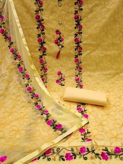 Name: Glamify® yellow Cotton Suit Dress Material,Unstitched Cotton Blend Kurta,Churidar Material Embellished,Semi Stitched Cotton Blend Salwar Suit Material Solid,suits material for girls,best cotton suits material.