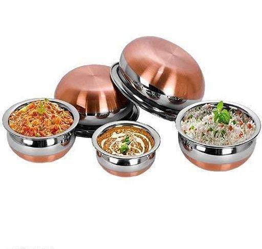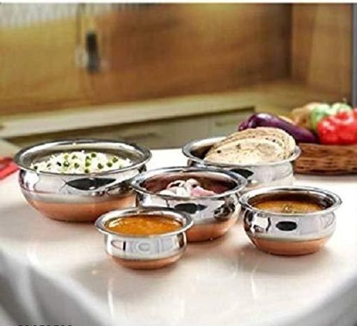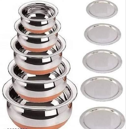 Name: Stainless Steel Copper Bottom Handi/patila/Pot Biryani Punjabi Handi Set with Lid 5 Pieces Set (Capacity:- 0.5 L, 0.8 L, 1.2 L, 1.5 L, 1.8 L) Handi 0.5 L, 0.8 L, 1.2 L, 1.5 L, 1.8 L with Lid (Stainless Steel, Copper, Induction Bottom)