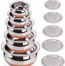 Stainless Steel Copper Bottom Handi/patila/Pot Biryani Punjabi Handi Set with Lid 5 Pieces Set (Capacity:- 0.5 L, 0.8 L, 1.2 L, 1.5 L, 1.8 L) Handi 0.5 L, 0.8 L, 1.2 L, 1.5 L, 1.8 L with Lid (Stainless Steel, Copper, Induction Bottom)