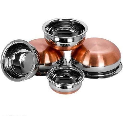 Stainless Steel Copper Bottom Handi,patila, Pot Biryani Punjabi Handi Set with Lid 5 Pieces Serving Bowls with Lids Cookware Set Capacity:- 0.5 L,0.8 L,1.2 L,1.5 L,1.8 L,(Copper & Silver).
