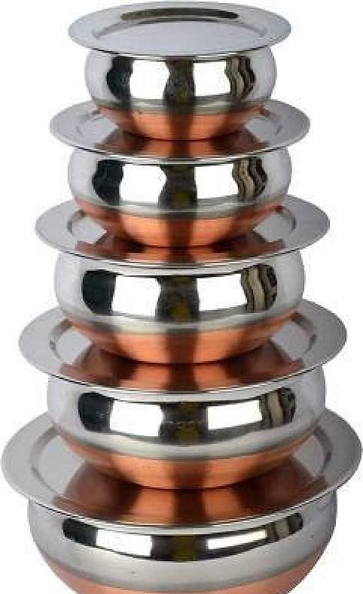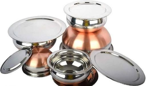 Name: Stainless Steel Copper Bottom Handi/patila/Pot Biryani Punjabi Handi Set with Lid 5 Pieces Set (Capacity:- 0.5 L, 0.8 L, 1.2 L, 1.5 L, 1.8 L) Handi 0.5 L, 0.8 L, 1.2 L, 1.5 L, 1.8 L with Lid (Stainless Steel, Copper, Induction Bottom)