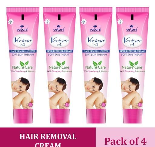 Product Name: Vetoni Veclean No.1 Hair Removal Cream for Men and Women – Smooth & Painless Hair Removal with Strawberry Freshness and Skin-Soothing Care,(40 gm),Pack of 4 Each (160 gm)