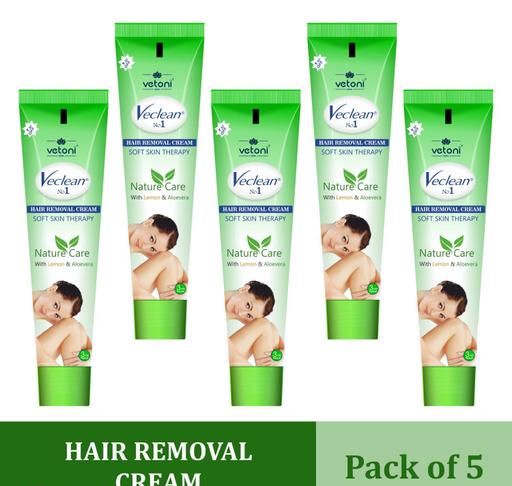 Product Name: Vetoni Veclean No.1 Hair Removal Cream for Men & Women | Smooth Skin with Lemon & Aloe Vera | Gentle, Effective & Easy Hair Removal at Home,(40 g ), Pack of 5 Each (200 gm)