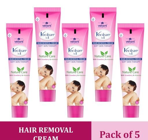 Product Name: Vetoni Veclean No1 Hair Removal Cream for Men and Women with Strawberry Extract for Smooth Soft Skin and Easy Painless Hair Removal at Home,(40 gm), Pack of 5 Each (200 gm)
