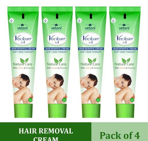 Product Name: Vetoni Veclean No.1 Hair Removal Cream for Men & Women | Smooth Skin with Lemon & Aloe Vera | Gentle, Effective & Easy Hair Removal at Home,(40 gm), Pack of 4 Each (160 gm)